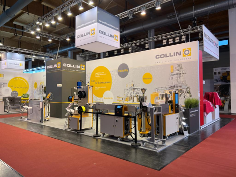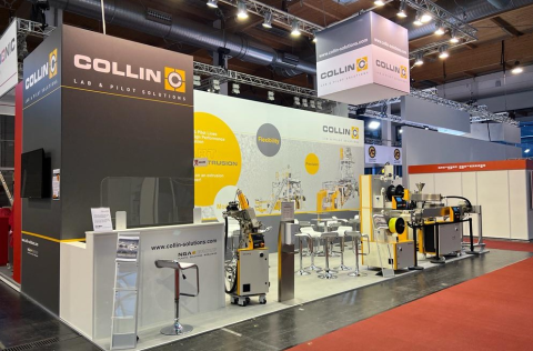 „The line at the Fakuma booth includes an extrusion unit with a LAB LINE Extruder E 25 P as well as a height-adjustable TEACH LINE extruder. COLLIN extruders are suitable for various technical polymers, can process high-temperature materials and can be equipped with dosages for one or several components. Furthermore, 3D filaments can also be produced via direct extrusion by using a COLLIN compounder “, says Corné Verstraten, CSO / Joint Partner COLLIN Lab & Pilot Solutions GmbH.