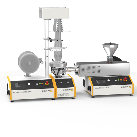 Die Collin Teach Line Serie umfasst Extruder, Compounder, Walzwerke, Blas- und Flachfolienanlagen, Stretching-Maschinen, Wasserbäder, Granulatoren und Rohranlagen. Vor allem Universitäten, F&E-Abteilungen oder etwa Labore nutzen die Tischmaschinen für Tests, Schulungen oder Versuche.
