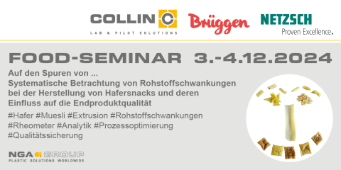 Dann nehmen Sie an unserem FOOD Seminar in Maitenbeth teil! Zusammen mit H. & J. BRÜGGEN, NETZSCH-Gerätebau GmbH & COLLIN Lab & Pilot Solutions beschäftigen wir uns mit dem Einfluss von Rohstoffschwankungen auf die Endproduktqualität.