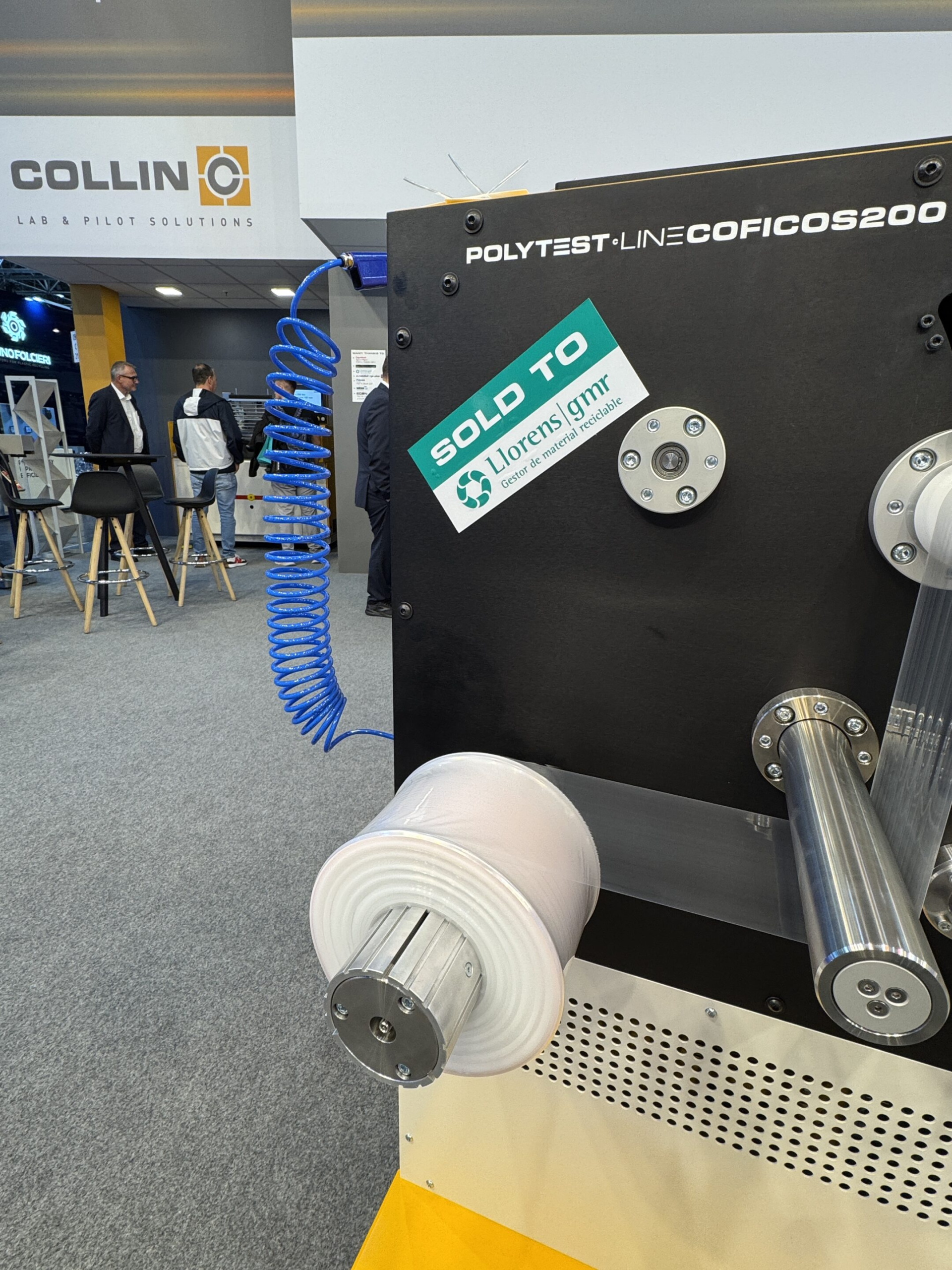 Darüber hinaus präsentiert das Unternehmen mit der POLYTEST LINE COFICOS 200 eine neue Lösung zur optischen Folieninspektion. Die Linie kombiniert einen Einschneckenextruder, eine Chill-Roll und eine Inspektionseinheit mit Kamera. Sie erkennt optische Fehler wie Gelpartikel, Black Spots oder Pigmentagglomerate in eingefärbten Folien und liefert damit wichtige Daten für die Qualitätskontrolle.